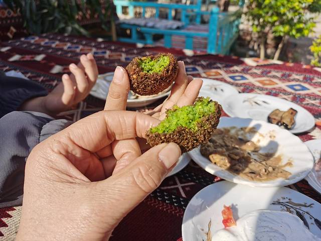 • 金字塔+骆驼骑行:吉萨金字塔群打卡,娃第一次骑骆驼尖叫连连!我们根据车夫面相拦了一辆马车,车夫好到爆,4个人1000埃磅2H(最后超时了20分钟,没有任何抱怨;最后我们主动给了100埃磅小费),全程保护我们不被其他人骗,还帮我们找了骆驼(300埃磅15分钟),围着2座金字塔,免费帮忙拍照。