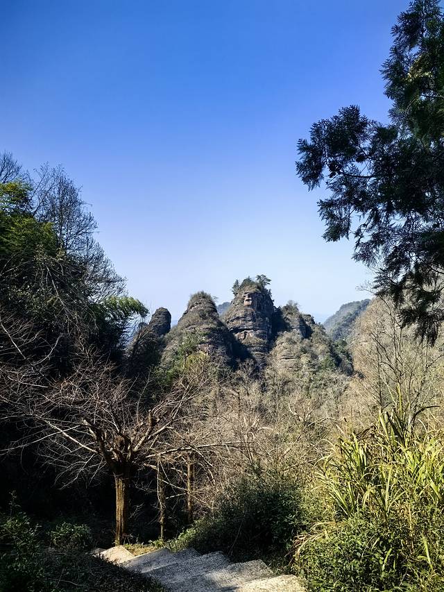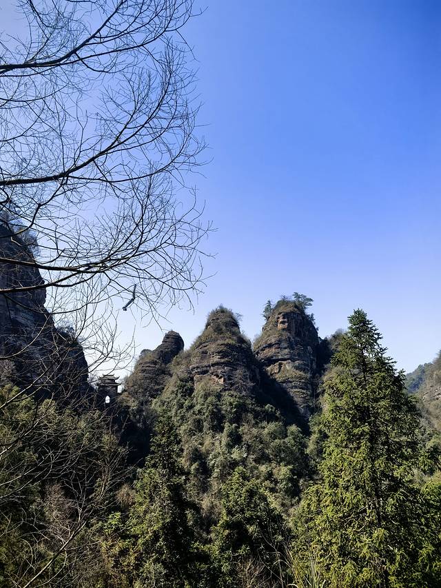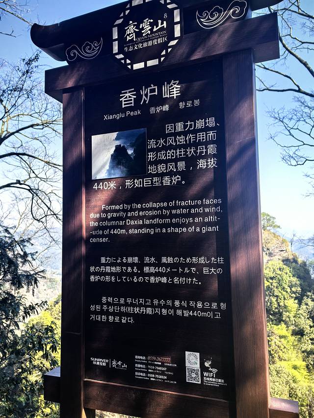 山体以紫红色砂岩为主,形成奇峰、幽洞、怪岩等独特景观,如香炉峰、天桥岩、真仙洞府等,丹霞地貌与青翠植被相映成趣。