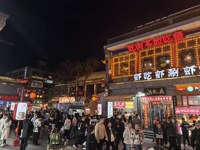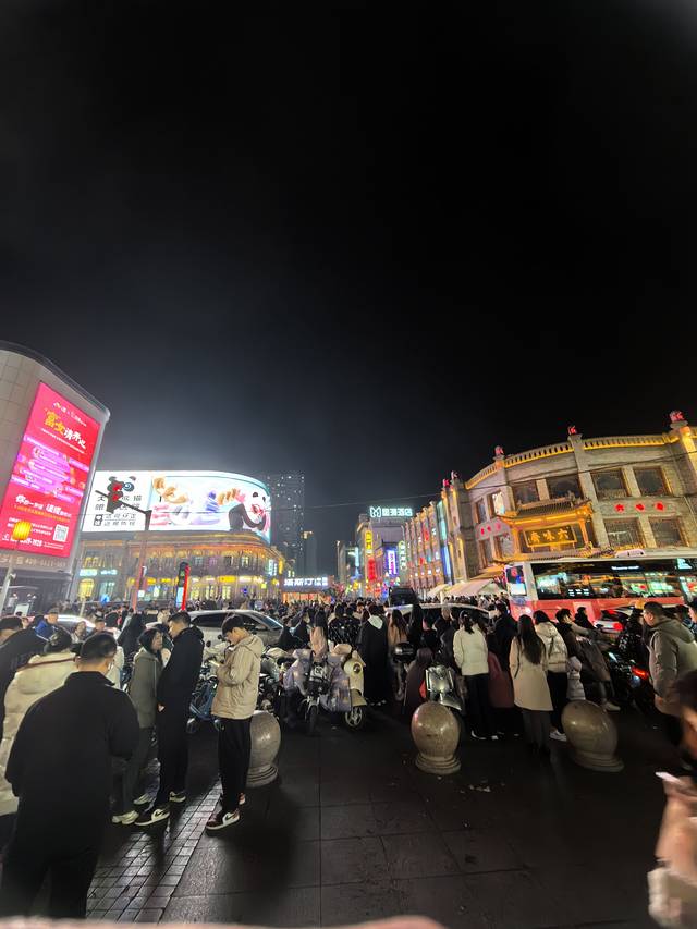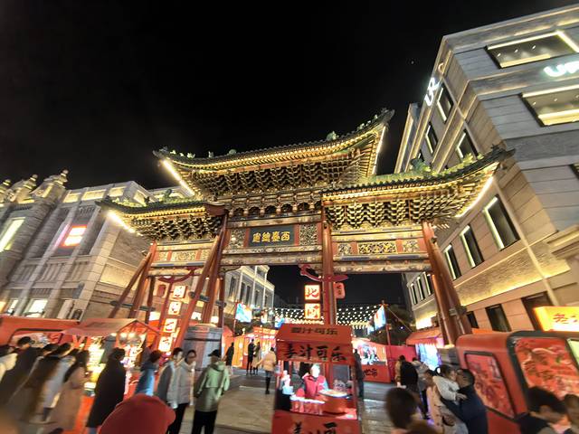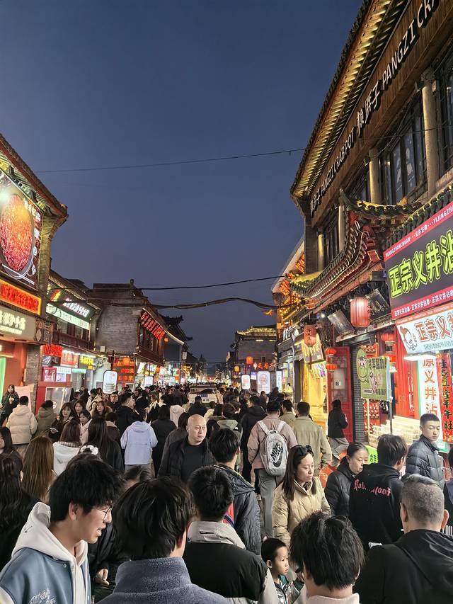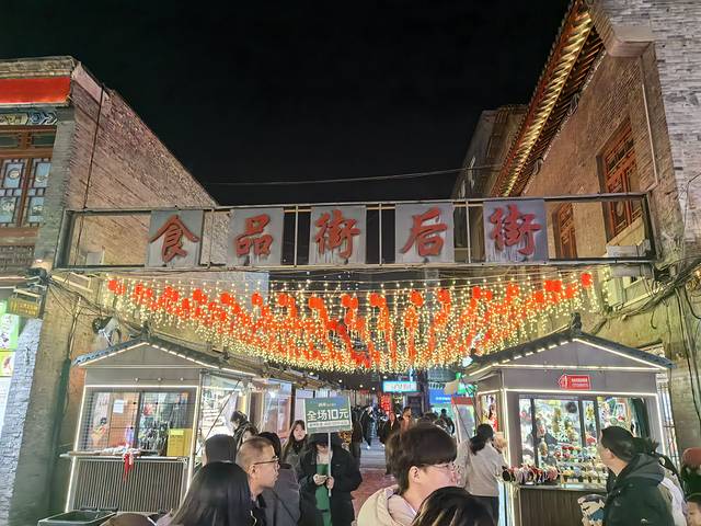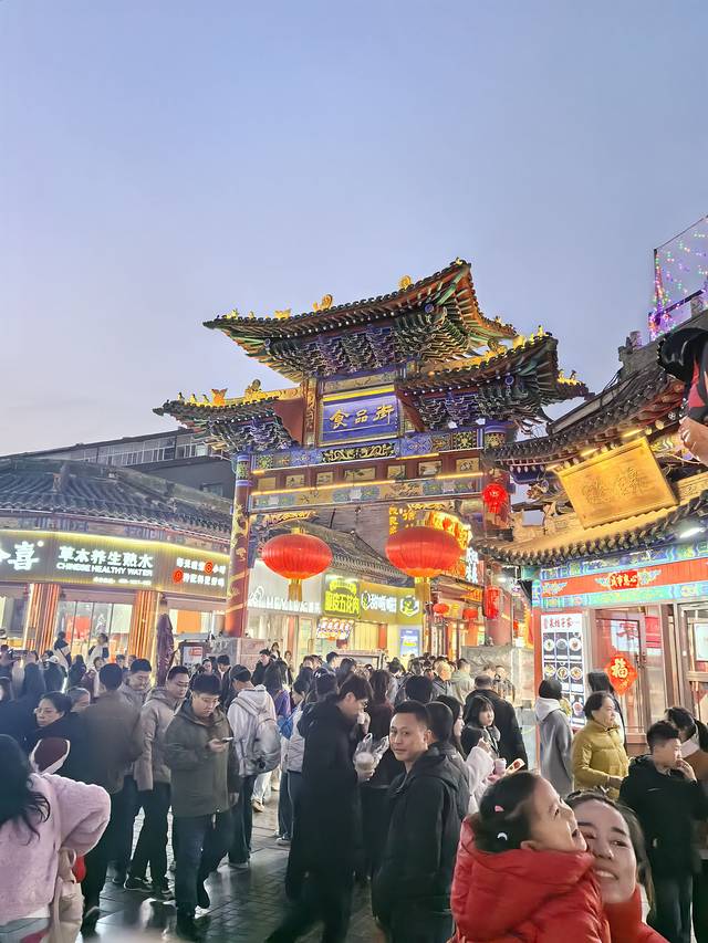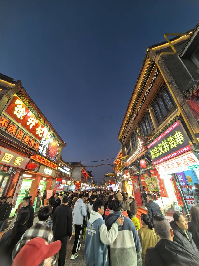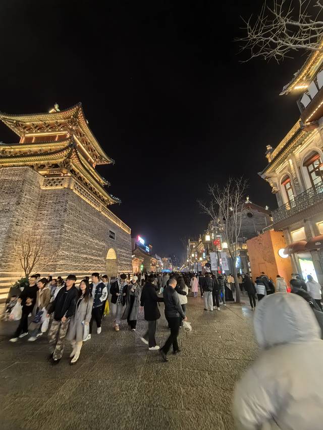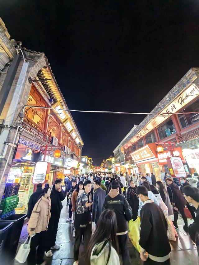 在闭园前我们,又抓紧时间前往太原的商业地标食品街和钟楼街打卡吃饭(中间差点忘了,还没买太原到阳曲的车票~选择地铁一号线桃园路附近的酒店也是为了无缝衔接前往方特。按照现在方特的营业时间,最好的班次火车🚆就是从太原站出发的了,车票一共花了17.5元)。于是又花了40元滴滴前往,到了才发现,这里的人是真的多,吃的还跟全国各地都一样……于是我们又一次改变策略,只逛不吃饭了。想吃就随便吃点。我们三条街巷一共花了50元用于吃喝,又花了75元买了点旅行纪念品。