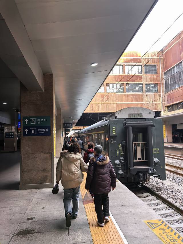 今早6:40起床,由于前一天晚上三个人吃的太饱和太晚,所以我们决定不吃饭,直接退房出发。出发后,我们先到酒店楼下的便利店买了全天零食大约花了65元。随后7:30准时步行100米到地铁1号线桃园路站上车到太原站东广场下车(这里不得不提,百度导航给我来了一个错误大坑,东广场站出来是一个被围起来的停车场,而且还在修路,我们不得不绕行800米在西广场口进站,差点耽误了火车🚆)进站乘坐绿皮火车到阳曲站。