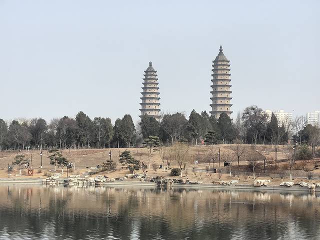 吃完早点,我们准备骑车(租车3.5*2元)先沿汾河边的公园逛逛。逛完一圈大约十点回到酒店位置,乘一号线到双塔站下车,到太原双塔公园游玩。大约逛了两个小时,同时花了50元,进双塔寺里。