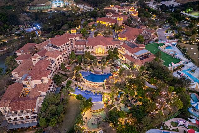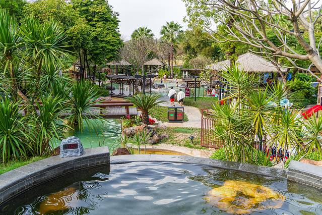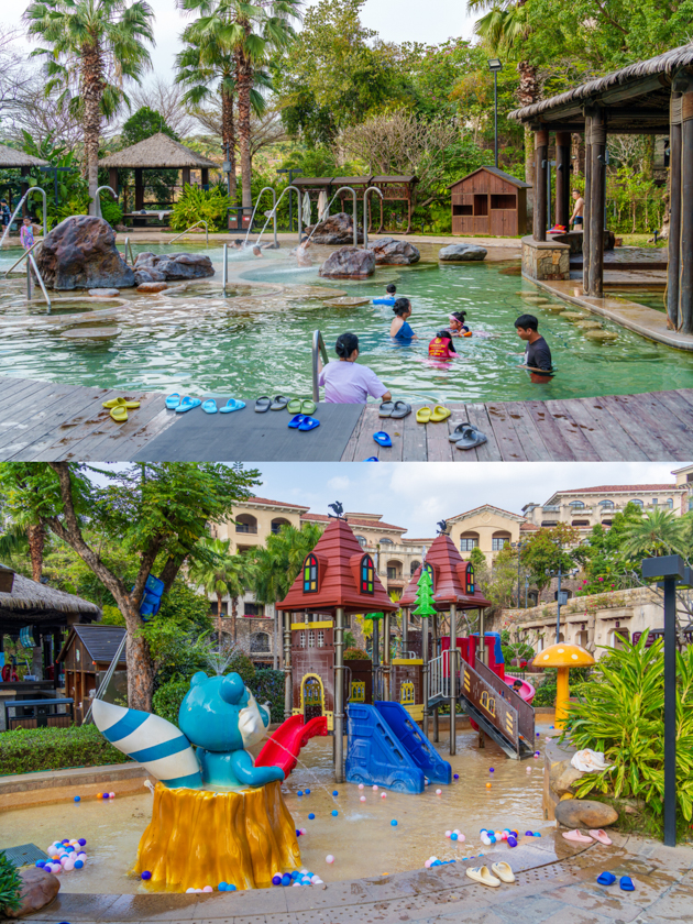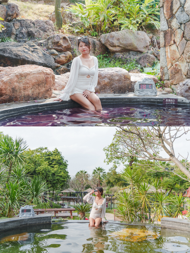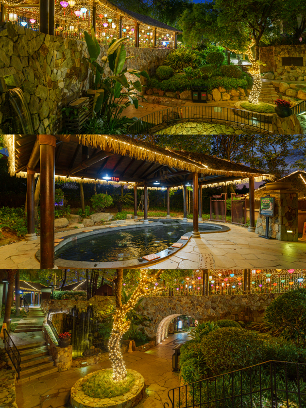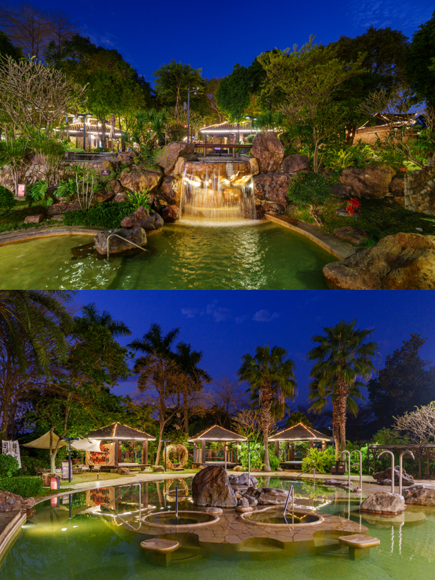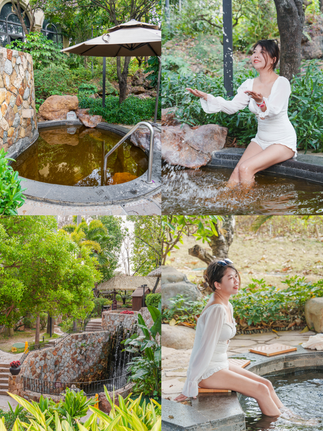 来这儿怎么能不泡温泉呢!酒店拥有多个特色温泉池,错落分布在园林之中。