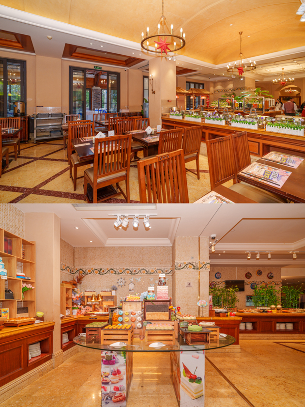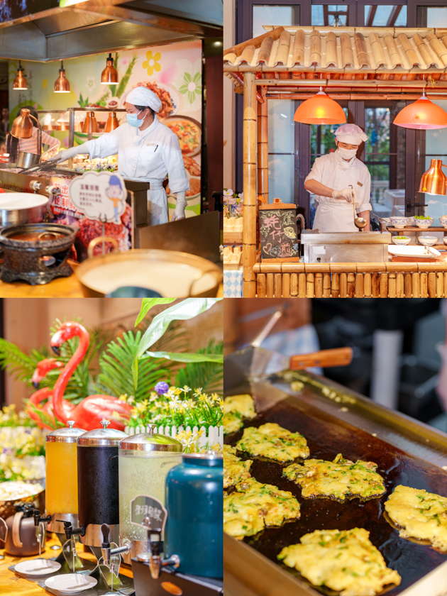 早餐也是丰富到让人挑花眼。清晨,先来一顿元气满满的早餐,从新鲜出炉的面包、热气腾腾的粥品到各类精致的点心,开启活力满满的一天。