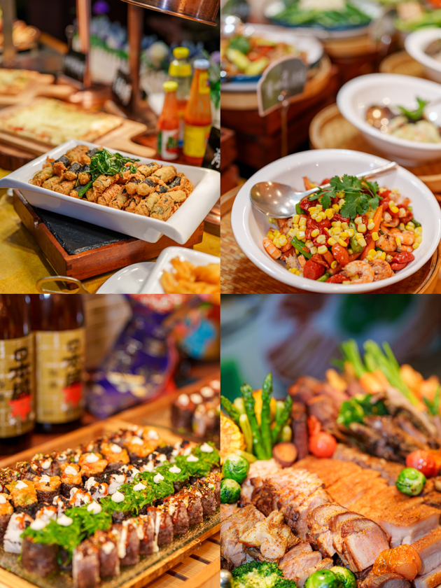 美林湖温泉大酒店湖畔自助餐厅的「春韵夏初·美食探索季」自助餐必须强烈安利!自助餐汇聚了全球美食,鲜嫩肥美的海鲜、滋滋冒油的烤肉、色彩缤纷的甜品,还有应季的新鲜果蔬,每一口都是对味蕾的极致诱惑,让你扶墙进扶墙出不是梦。