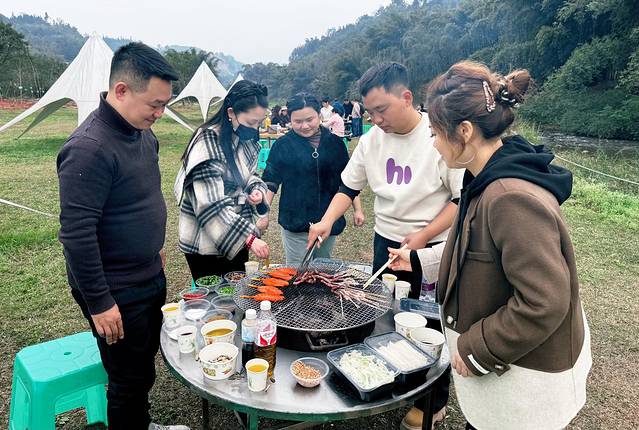 春风里农庄的柴火灶烹出地道川南口味:放养烤全羊焦香扑鼻,活水鱼火锅鲜掉眉毛,稻田鸭与老鸭汤治愈乡愁,人均30-50即可饱尝山野馈赠。