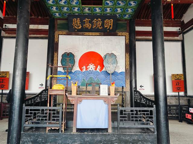 平遥 县衙大堂上书“亲民堂”坐北朝南,高耸威严,在建筑上是县衙署中最为宏伟的,在职能上也是最为重要的,全县所有的大案、要案、命案都要在这里审理,大堂内,正中屏风上绘有山水 朝阳 图,山正、水清、日明,即“清正廉明”,这与宫阁上方所悬匾额“明镜高悬”可谓异曲同工,意即告诉百姓本知县办案公正、廉明。每天在这里还有县太爷升堂断案表演,全程20分钟左右,还是挺有意思的,而且不需要单独买票,表演时间为每天的9:30、11:00、15:30