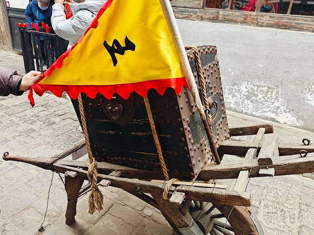 院内还能看见电视剧里面我们看见的镖局常用的独轮镖车、镖银、镖旗等等。镖车是当时镖局走镖时的重要交通工具,镖车有很多种,从马车到轿车推车不一而足。当时还有一种跑镖的承载工具,那就是镖船。镖旗是三角形的小旗子,上面的字是代表总镖头的姓,所以在走镖的过程中,想要劫镖的人就能看出来是谁保的镖,就不一定会乱劫镖了。