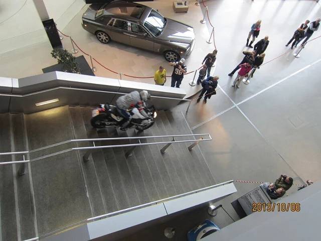 我们直接前往最想去的宝马博物馆。宝马博物馆和宝马世界在街两边,正对门。参观宝马博物馆会了解到的宝马的历史,从最古老的车型到现代化的概念车,整个的发展过程都充分的展现出来了。宝马世界会展出最新款的宝马产品和车型,不定时的还会有现场的摩托车秀,骑手在场馆内骑着摩托车上下楼梯,风驰电测,帅的很。