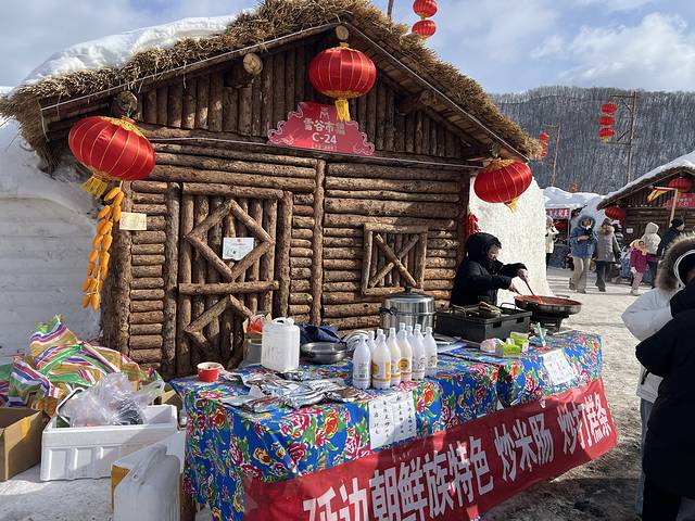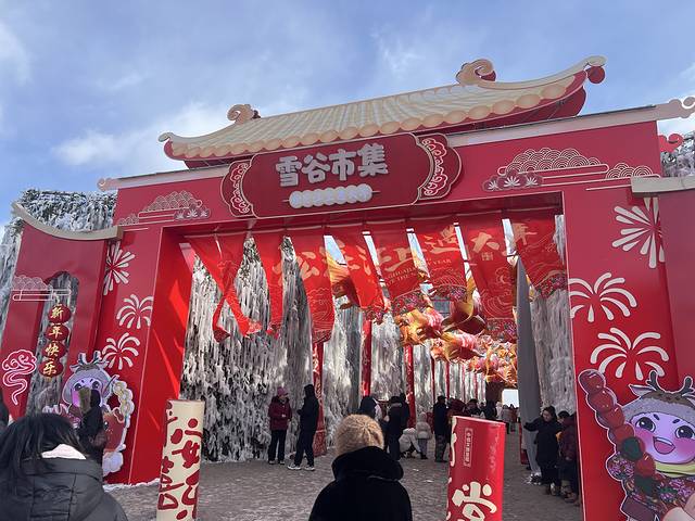 恰好当日赶上雪谷集市开大集,途中特意下高速去转转。浓浓年味的集市,主要是卖各种小吃和玩雪项目。门票是免费的,但里面物价偏高,外加天气寒冷,我们走马观花逛了一下就继续赶路了。