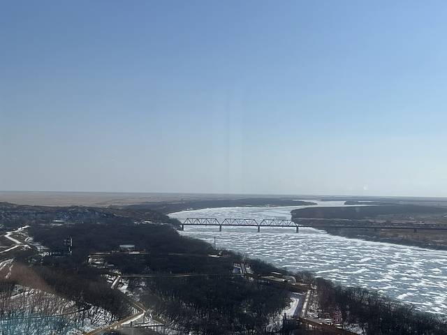 龙虎阁10层以下是展览馆,主要讲解这里的前世今生,细细看下来也需要将近1个小时。实际上整个景区在旺季时会有很多不同的游玩景点,包括做小火车去图们江对面的朝鲜游乐园。可惜现在是冬季景点都关闭了,我们逛完龙虎阁就返程了。
