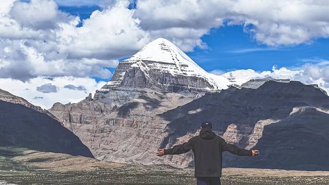 在塔尔钦小镇的经幡作坊,五色布匹在风中翻卷成彩虹瀑布。店主次仁用缺角的木碗盛来酥油茶,茶汤表面浮着的油花在阳光下折射出七彩光晕。“转山时带着这个”;他把印着六字真言的隆达塞进我手心:“遇到困难就撒向天空,山神会听见”我抬头望向北方的冈仁波齐,这座被四大宗教奉为宇宙中心的神山,此刻正被流动的云纱半遮面容,宛如戴着面纱的圣女。