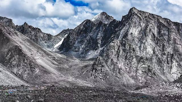 过曲古寺后,山路开始显露狰狞。雨点裹着冰雹砸在冲锋衣上噼啪作响,湍急的溪流漫过石阶,登山杖每次探底都像在未知深渊试探。在海拔5360米的止热寺补给点,我拧着裤脚倒出半碗冰水,藏族(大姐)笑着递来热甜茶:“淋过神山的雨,来年眼睛会更亮。”她说话时,转经筒在腰间轻轻摇晃,铜铃与经筒转轴的摩擦声,竟比所有现代登山装备都更让人安心。