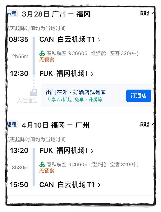 从广州出发的直航航线祇有春秋航空,另外也付费购买行李托运配额。