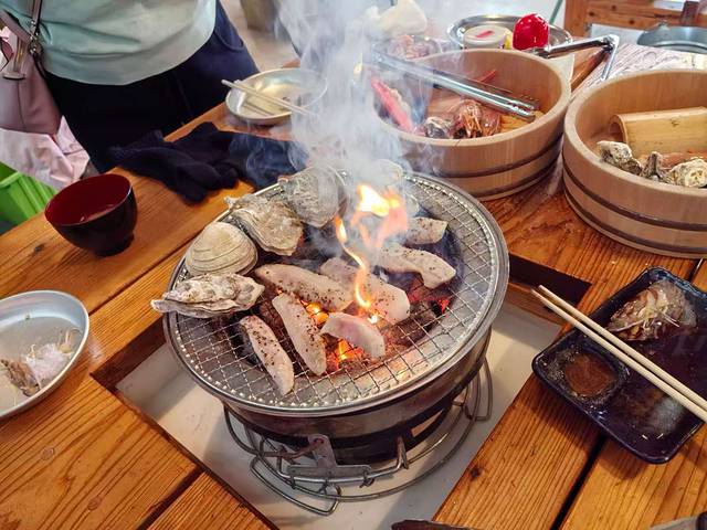 上糸岛观光前先品尝一下炭烤生蚝🦪……