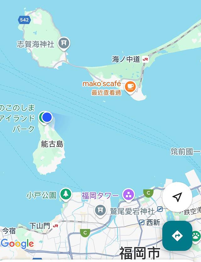 这次我们选择自驾上岛並坐汽车渡船前往,从侄浜码头出发乘船十分钟即可到达能古岛。
