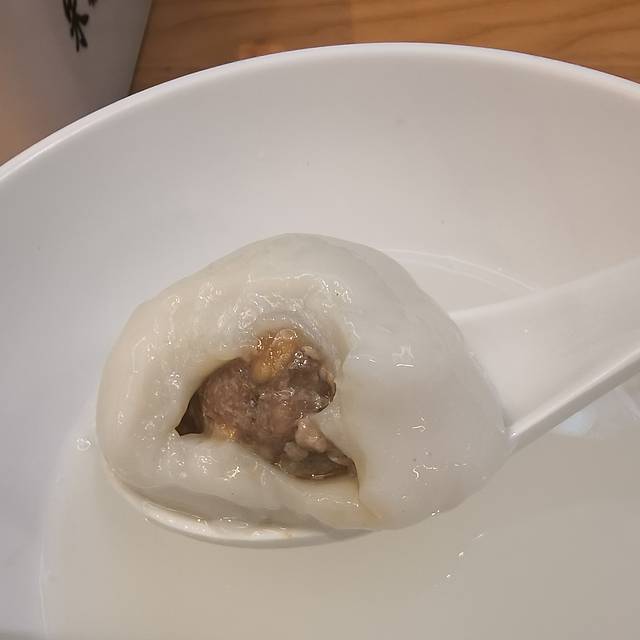 虽然在平江路吃的都不是太甜,但对一个北方胃来说还是有点腻,到了山塘街几乎已经不想再吃东西,可看到朱新年点心店有从来没吃过的鲜肉汤团,还是尝试了一下。汤团个头不小,糯米外皮包裹灌汤的肉馅,肉馅偏甜口,还挺好吃的,不过也只敢吃一个。