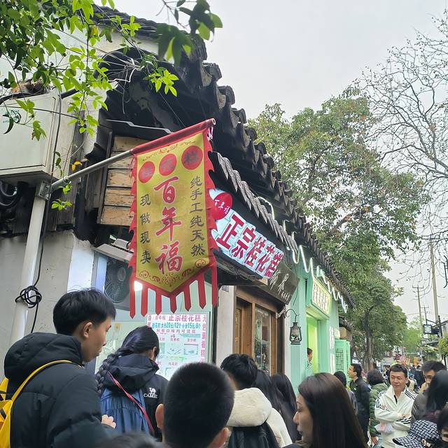 继续走发现一家店,好多人拿板凳坐在门口的河边吃,一搜发现是必吃榜的糖粥。