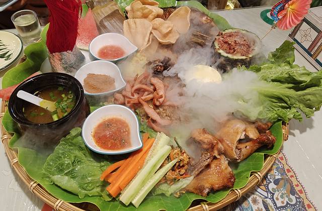 晚上吃的孔雀宴,菜量很大,很有当地特色