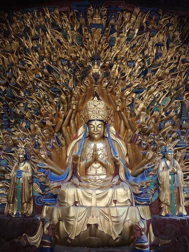 ✨ 造像奇迹:高7.7米,宽12.5米,1007只金手如孔雀开屏,每手执法器,掌心刻慧眼,象征“千手护持,千眼照见”。