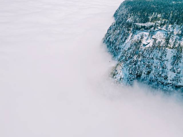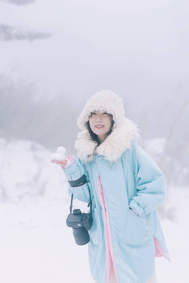 破晓前的雅女湖是面被施了魔法的银镜。蹑足踏过覆雪湖面,冰层在靴底发出脆响,如同踩着大地隐秘的脉搏。待到朝阳吻上东侧山棱,雾气自湖心升腾漫卷,对岸的红杉林渐次显影,像一幅正在显影的湿版照片,瓦屋山的小程序里有各个景点的直播画面,我看到了雅女湖再蓝天里的样子,但等我抵达,大雾起,又别有一番景致