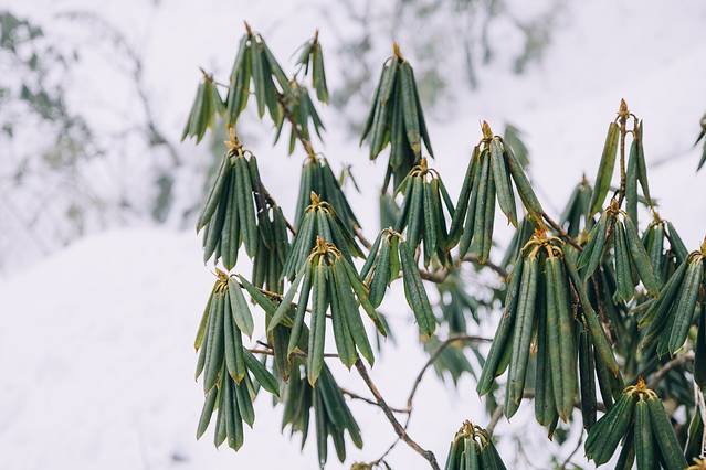 清晨六时的杜鹃林,是独行者的秘密剧场。夜雪新霁,每根枝条都裹着半透明的冰壳,风掠过时簌簌落下细雪,如同拆封一封来自北极的信笺。偶有早起的松鸦掠过枝头,蹬落的雪沫在光束中浮游,让人疑心闯进了《纳尼亚传奇》的衣橱秘境。