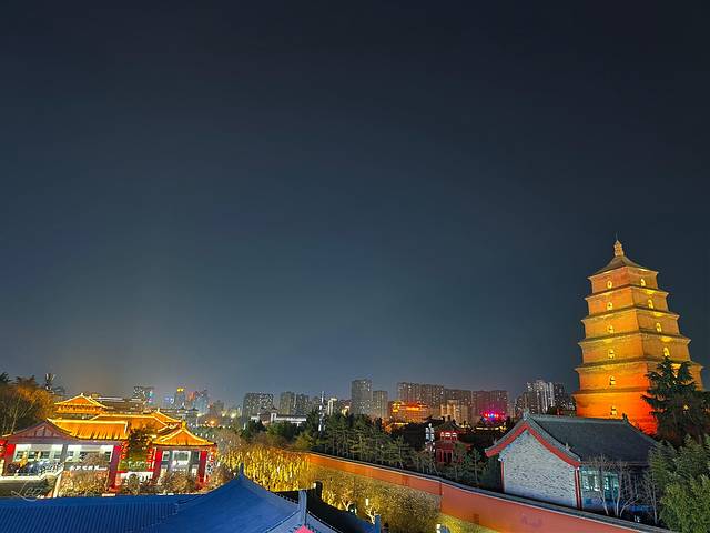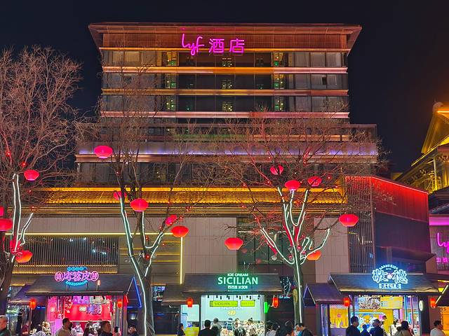 楼下就是大唐不夜城,2023年新装,地理热闹优越,房间就能看到不夜城,看表演可以多次每晚刷,时间不用赶,价格不贵,370两晚。缺点离地铁站略远,胜在旁边转角就有共享单车。