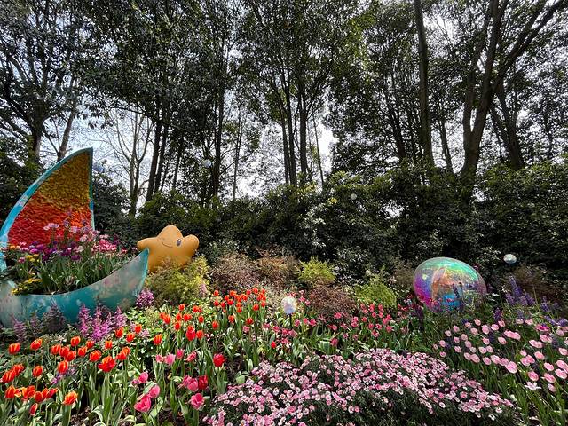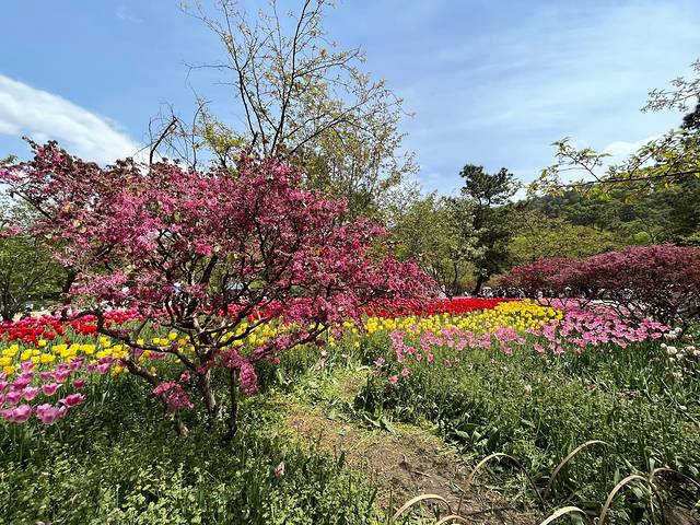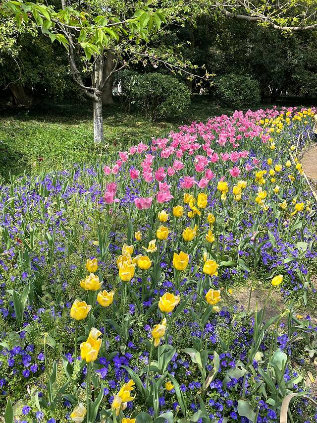 从浴鹄湾公交站,再坐一站路的西湖外环线,就到了苏堤南口,旁边就是太子湾公园。太子湾公园,算是杭州传统的春季赏花地,由于春天有樱花和郁金香而出名。太子湾公园起于南宋,因庄文、景献两位太子葬于此得名。1988年始建,1989年一期建成开放 。每年春天,近40万株郁金香盛放,花色繁多、花姿优雅,勾勒春日浪漫。