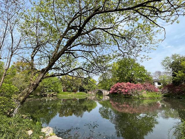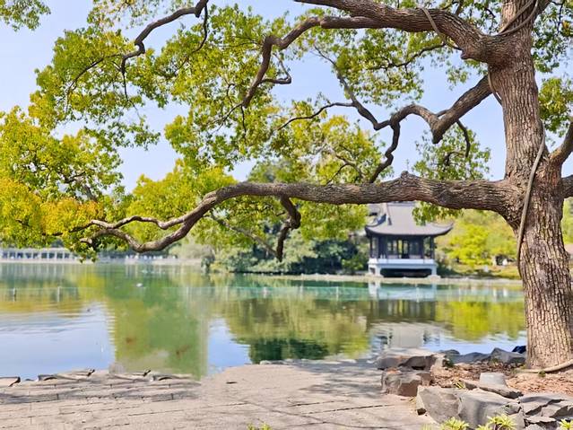 曲院风荷的春,是晨光揉碎在涟漪里的静谧。风过处,一泓碧水映着黛瓦白墙,连呼吸都染着草木清甜,时光在此温柔驻足。曲院风荷适合慢游,走走停停,拍拍照,休息一下,听听鸟鸣叫,顿时有了一种远离城市的幽静感。