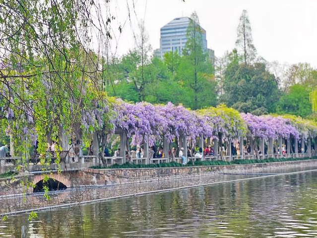 春季的杭州花圃也算是到了一年最美的时候。春日的杭州花圃,桃花灼灼映碧水,粉瓣轻旋似蝶舞;紫藤垂瀑缀长廊,紫雾氤氲染风柔。静听花影私语,满庭皆是春的絮语与温柔。
