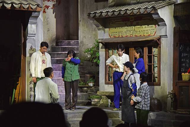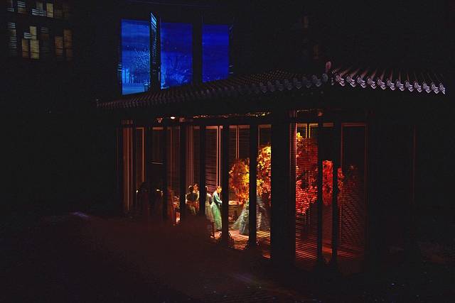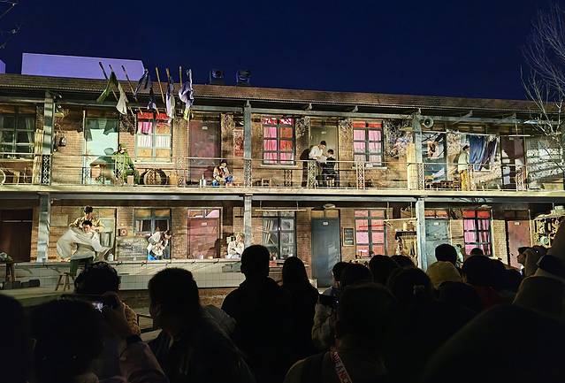 一天时间看了九场演出,算是比较紧凑了,但相对于全部二十一场来说还没过半,暂且留作以后再来的念想吧。离开时夜幕已经降下,灯光下的夜景也很有味道。只有红楼梦用现代科技赋能舞台戏剧,在梦幻般的光影特效中,将原著故事与现代故事碰撞契合,在沉浸式的体验中,重新解读经典,唤醒这段深藏于传统文化中的红楼梦基因,在观众心里构建起一座梦中的大观园。我想,这也是导演向经典名著致敬、向中华文化致敬的一种表达方式吧。