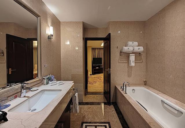 景区附近有云水宿集、七修酒店、阿尔卡迪亚酒店、桔子水晶酒店、希尔顿欢朋酒店、喆啡酒店、万达嘉华酒店等,提供酒景套餐,比单独购买更实惠,颇具性价比。我们入住阿尔卡迪亚酒店,房间干净宽敞,早餐丰富,非常超值。