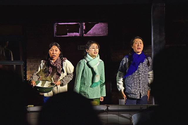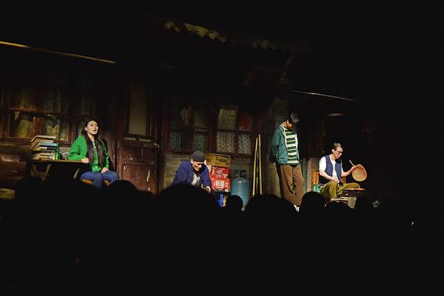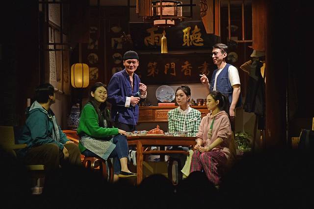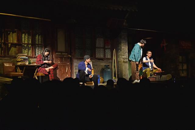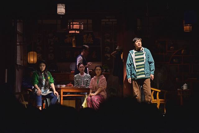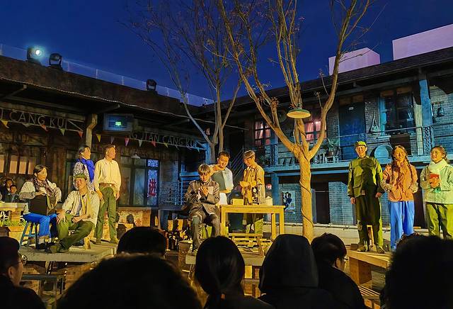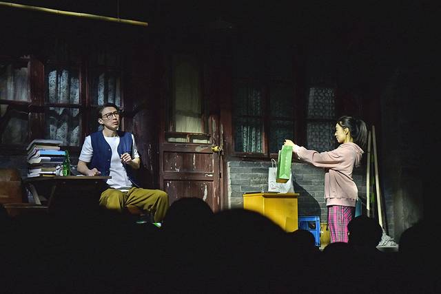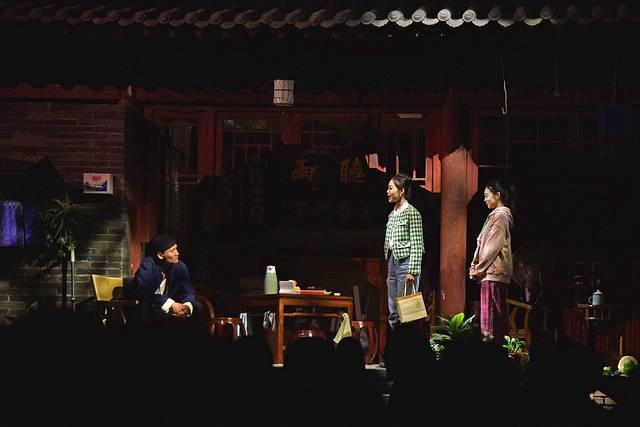 《四合院》是一个转着看的剧场,观众坐在四合院中间,随着剧情调转方向,哪边有戏看哪边。故事发生在2018年,四合院里性格各异的三户原住民对租住进来的两位“刘姥姥”从排斥到接受再到不舍的过程构成情节主线,在充满市井气息的台词中,感受老北京那份独有的高傲和热心肠。