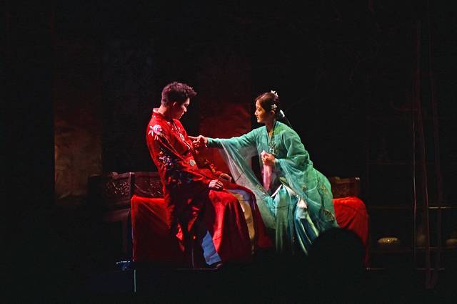 《读者剧场》通过读者的所思所感,引出书中的故事情景再现,观众在三个场景之间转场,其中两个观众站在中间,看四周环绕的场景中上演一段段悲欢离合,穿梭于真实与梦幻之间。