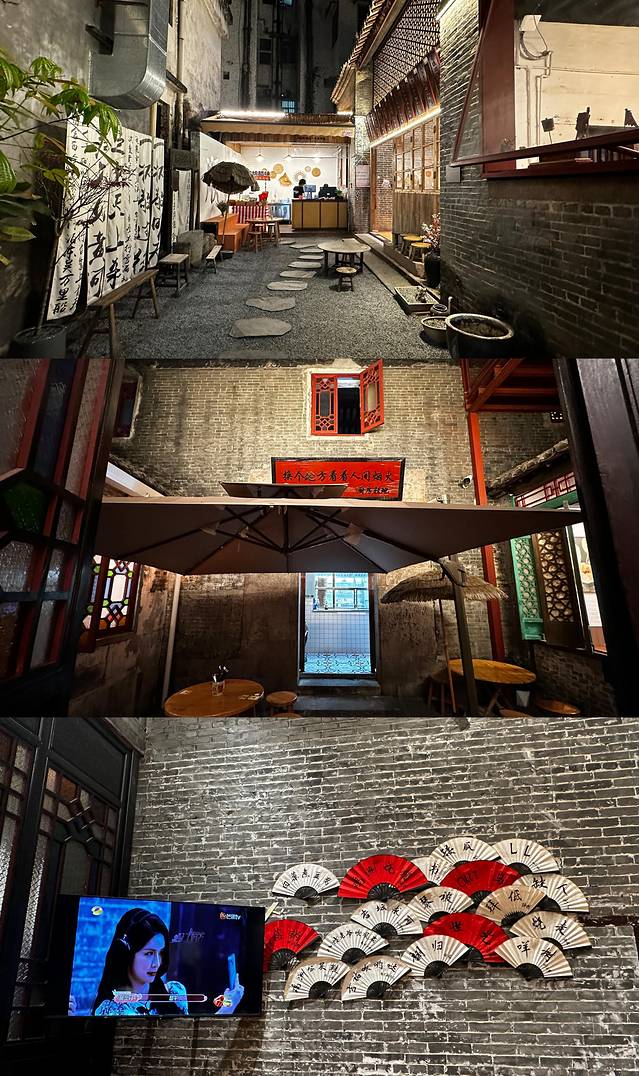 这家店的装修风格古色古香,门头大气,一进门就有一条石子小路,配上新中式装饰,拍照特别出片。大厅位置宽敞,还有单独的房间。