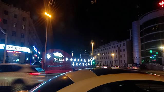 呼伦贝尔学院在夜色中显得庄重而神秘,红色的校名在灯光下格外醒目