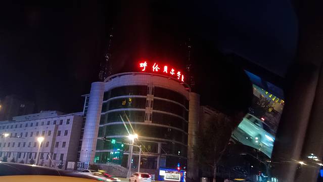 在车内拍了一张呼伦贝尔的夜景,车子在开动,有些摇晃。