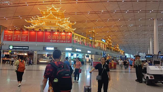 大厅里“京韵国潮季”的活动装饰,充满了文化气息,还有售卖北京特产的店铺,让我在出发前就感受到了浓厚的地域氛围。