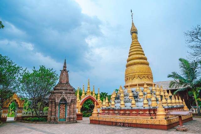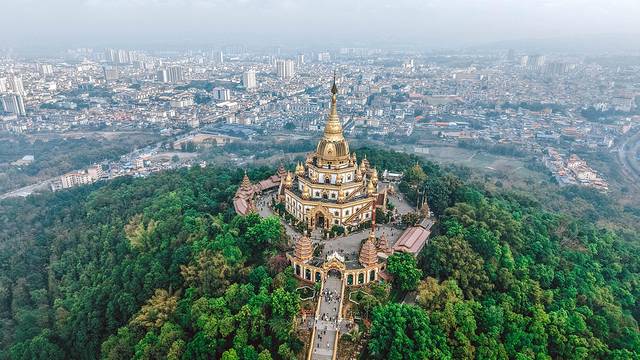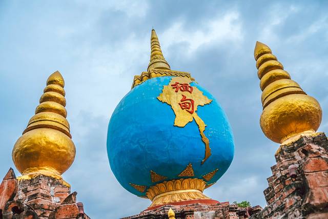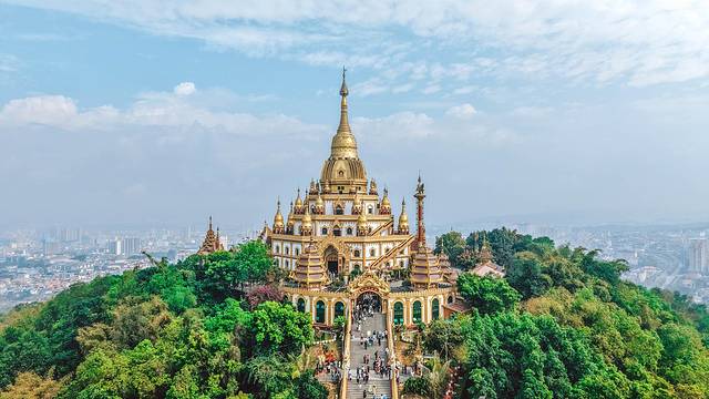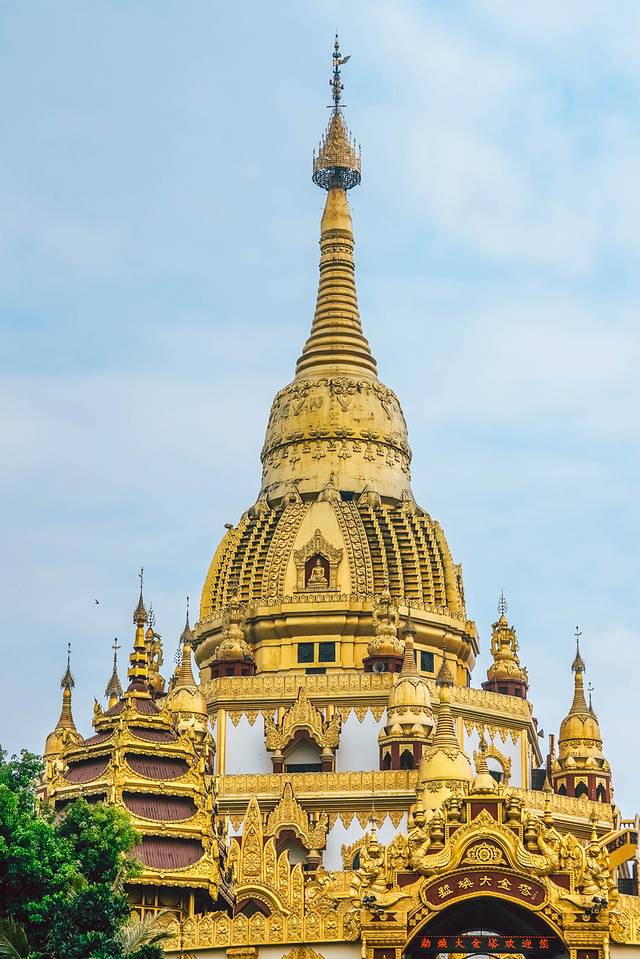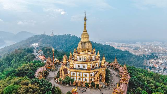 德宏地处西南边陲这里四季明媚林立着富有浓郁民族特色的古建筑、佛塔、寺庙。芒市勐焕大金塔勐焕大金塔是亚洲第一空心佛塔属南亚傣王宫的建筑风格雄伟壮观、气势恢宏!