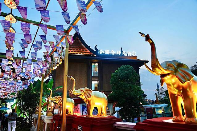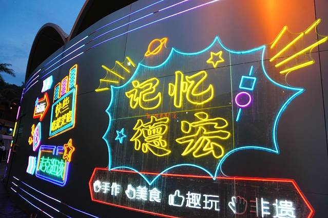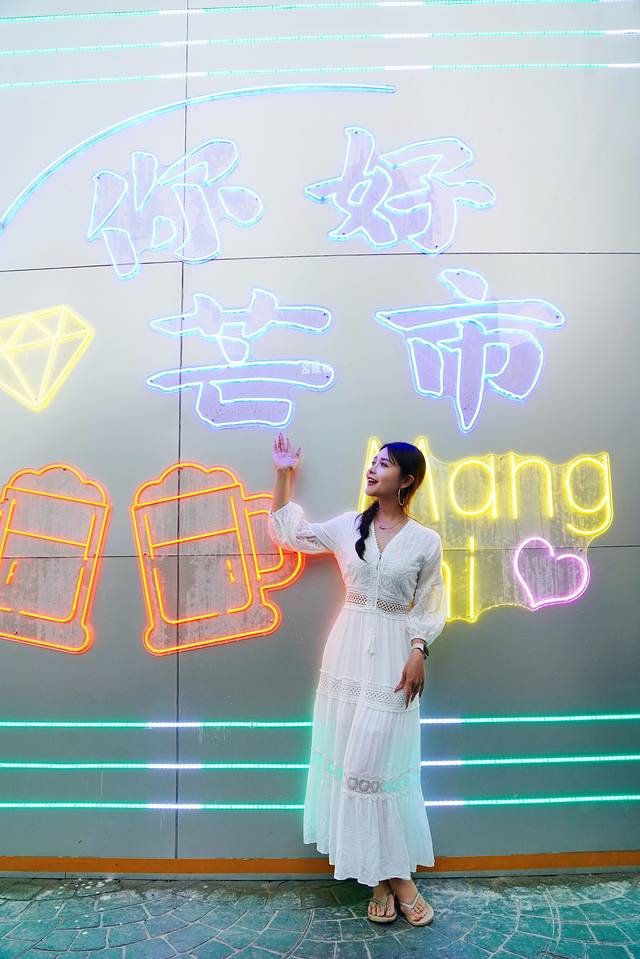 傍晚六点,夕阳的余晖还未完全褪去,傣族古镇的灯笼已经一盏接一盏亮起。青石板路被镀上一层暖橘色的光。如果想要在芒市寻找夜生活,那一定要来傣族古镇走一走瞧一瞧。
