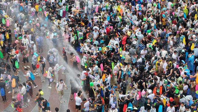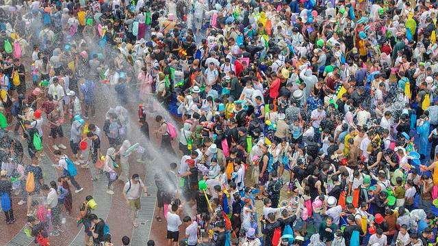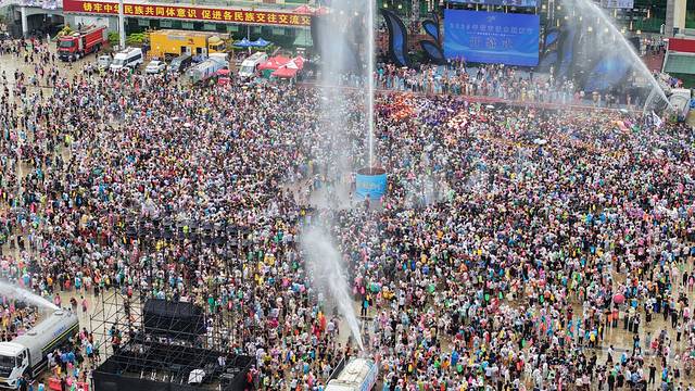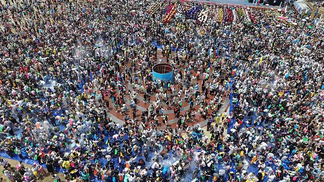 人们用泼水的方式来庆祝,祈求新的一年风调雨顺。