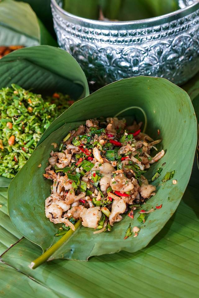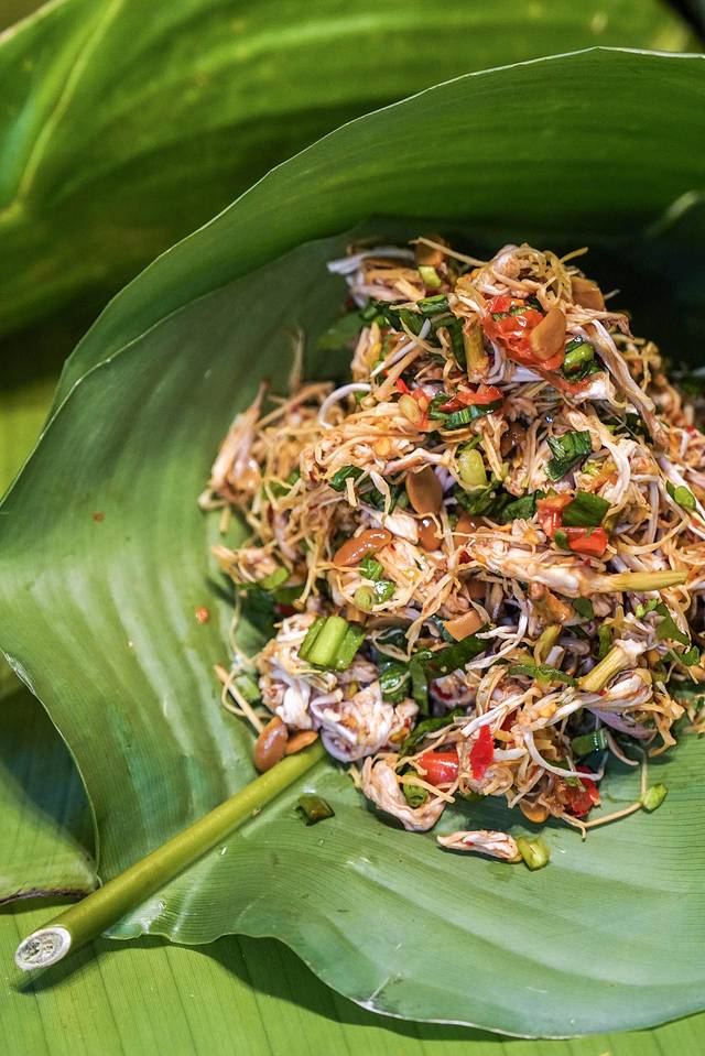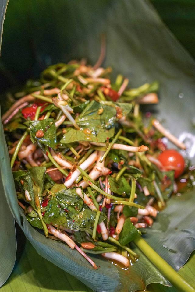 香草排骨,用茅草包扎的排骨,酥酥脆脆的。还有经典凉拌折耳根,这绝对是云贵川特色了。