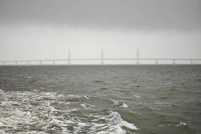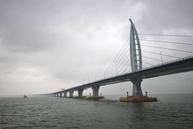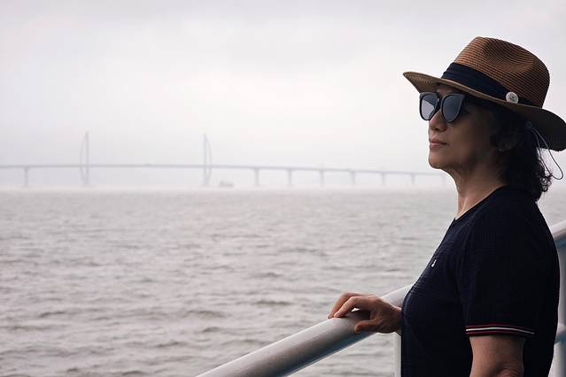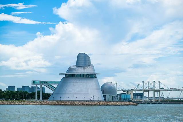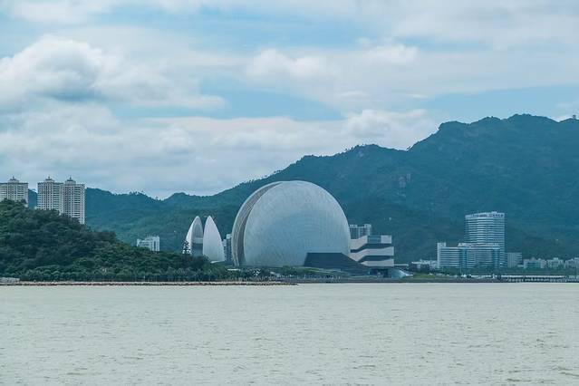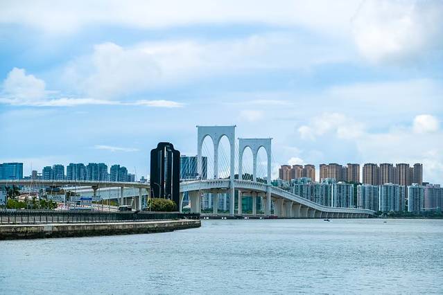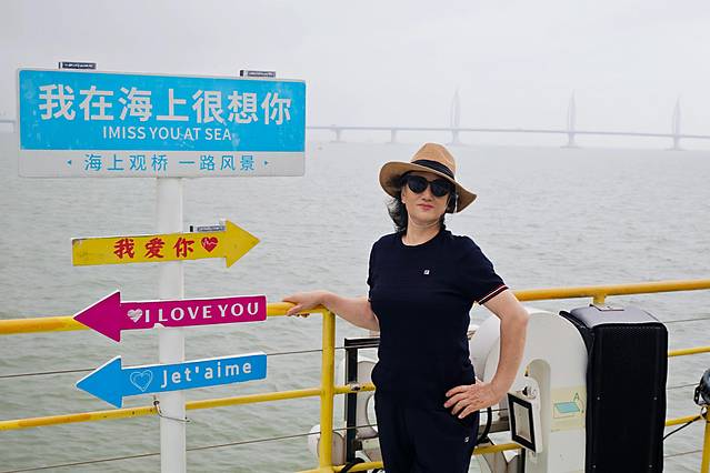 右侧,珠海情侣路蜿蜒如缎,日月贝在阳光下泛着珍珠光泽。孩子数着澳门的四座跨海大桥,妈妈在船舷边忙不迭的拍照。