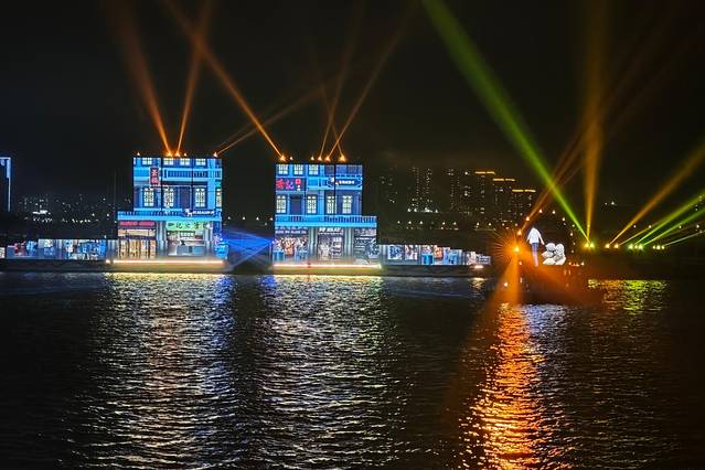 6艘小船与2艘大船组成了独特的海上舞台,数字灯光将整片海域幻化成浩瀚银河,三代人守护“一诺千金”的动人故事,随着浪声缓缓流淌。演出接近尾声时,母亲轻轻握着我的手,眼中满是感动:“这如梦如幻的景色,真的太美妙了。”