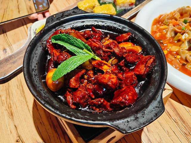 压轴菜是当家花旦老陈醋焖牛肉,有想过这两道菜结合在一起是什么样的味道吗。一大碗满满实实的老陈醋焖牛肉,牛肉很大块,裹上满满的汤汁一口下去,酸中带甜,可以拌米饭吃,一绝