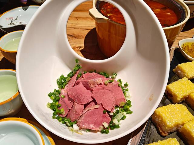 属于 平遥 古城给我的惊喜了,老远就闻到香味了,各种食材咕嘟咕嘟在铜锅里冒着热气,还有不要钱可以无限续的蘸料,嘎嘎好吃,分量也很足,两个人点个小锅就够了