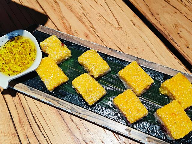 第一道是沁州黄米凉糕,在炎热的夏天第一道菜就是清清凉凉的凉糕,真的是太细节了。必须夸一夸黄米凉糕的颜值,那真是一个字绝!绝对第一口就让你爱上它!米和上面薄薄一层糯米夹着果仁果干,抹上桂花蜜,酸甜清凉,超级好吃