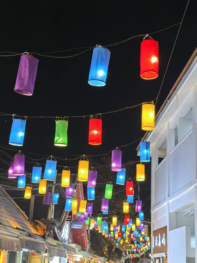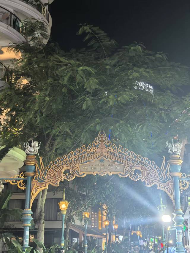 夜市街道都有这种小拱门,挺有特色的。路边很多卖傣族服饰的,都不贵,跟某宝差不多。但是水果都很贵,比大理和丽江贵多了。