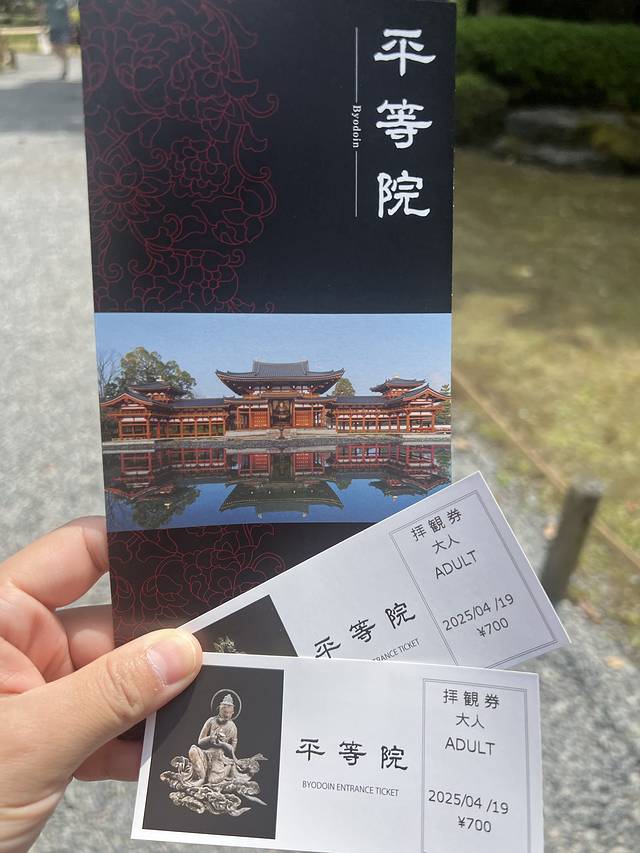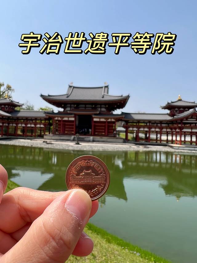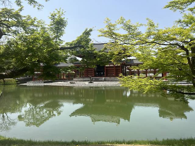 吃完后一路走去平等院,星巴克也有限定的抹茶蛋糕。平等院是日本佛教净土宗的代表建筑,世界文化遗产。其中凤凰堂屋顶上的凤凰像栩栩如生,被印在日本的十元硬币和一万日元纸币上,可以带着钱来打卡拍照。