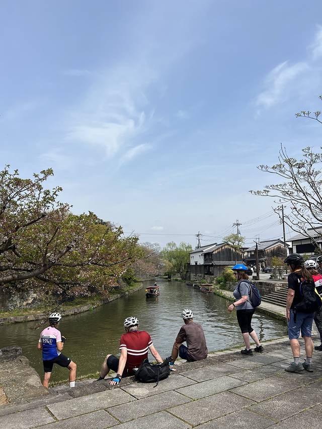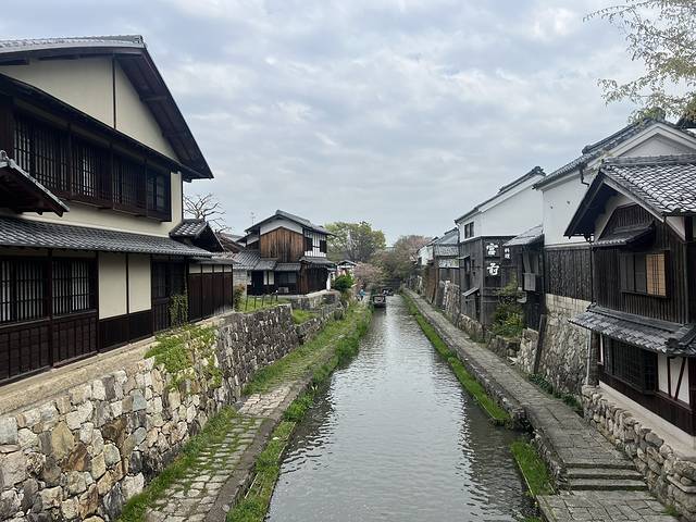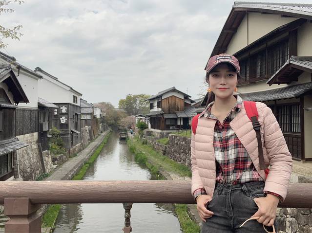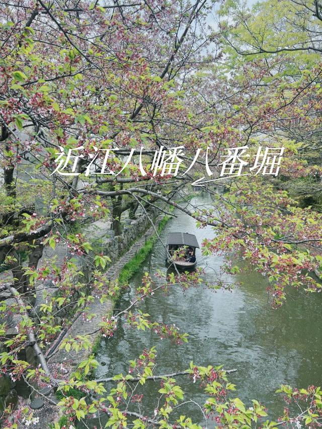 4.18,今天要去日式水乡近江八幡,一人250日元租个自行车骑一天。八幡宫,八幡堀都去了,还有些樱花没落。