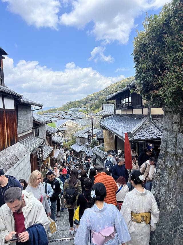 吃完出门,一路逛到二年坂,三年坂,石板小路,路边日式商店街,人非常多,还有各国旅游团。